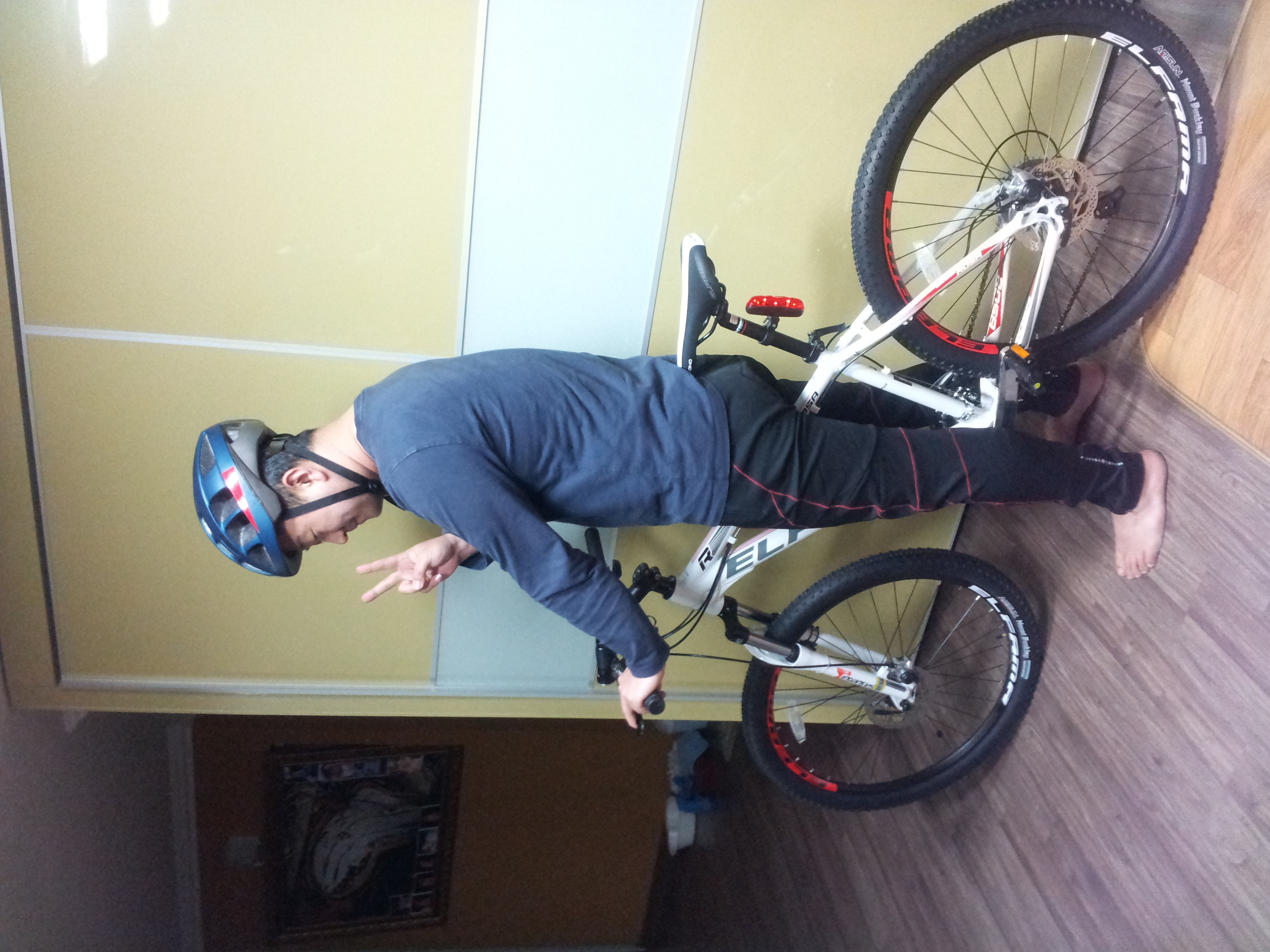 만족합니다. 편안하게 잘 타고 있습니다. 사진은 비가와서 실내샷으로 대신합니다. 다리가 짧게 나오네요 ㅎㅎ