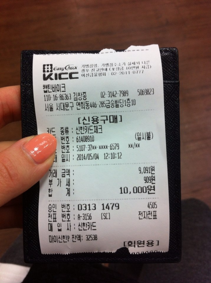 영수증 사진 첨부 합니다.