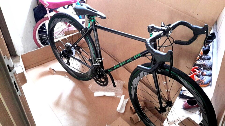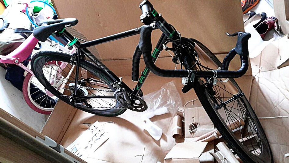 택배상자를 뜯어보면 이렇게 자전거님이 누워있습니다요!