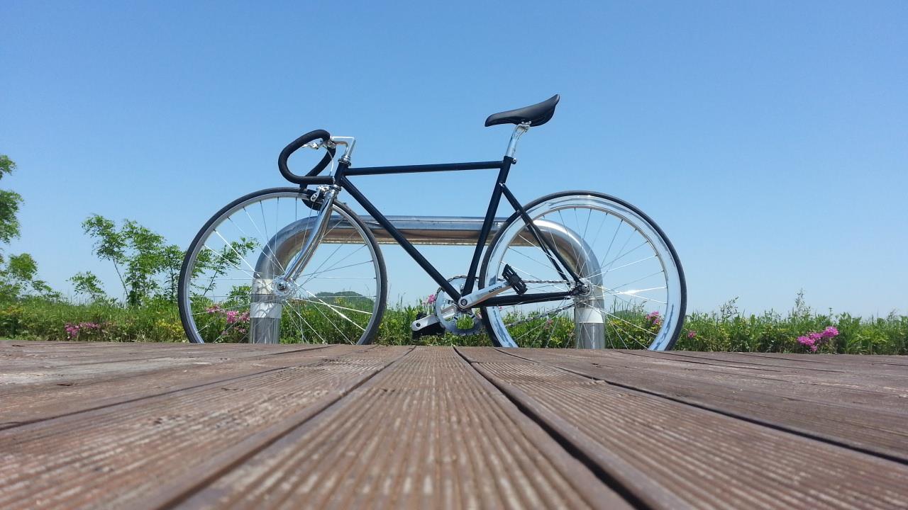 일단아몬드체인에다가휠이랑타이어도다른것보다좀더얇아서잘나가구요뒤에휠이이정말매력적이네요포크도친구가탐내더군요;ㅎㅎ