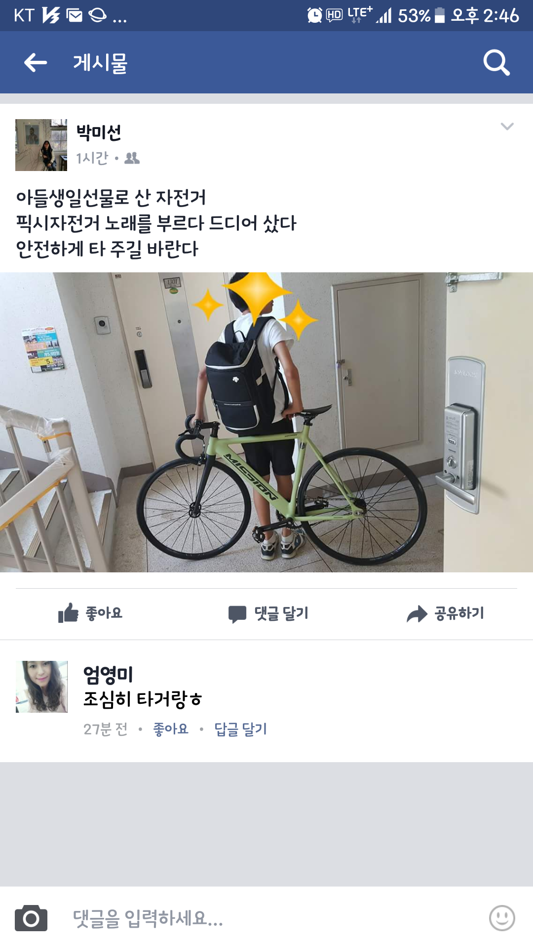 자전거가 생일 선물이라니 매우 기쁘겠네요^^센스있는 부모님이시네요~~~~