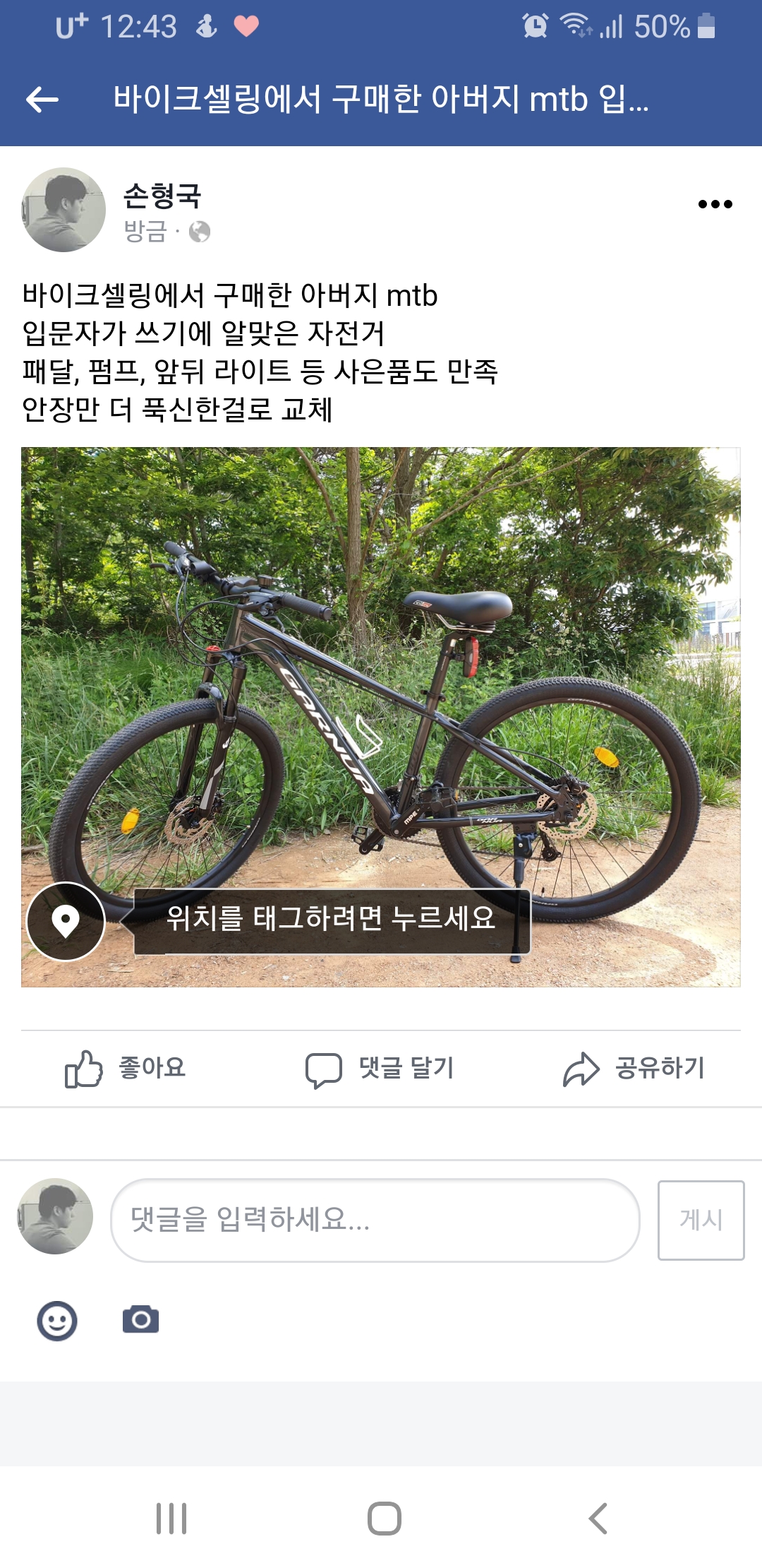 벌써 인천에서 대부도까지 라이딩 가셨어요 ㅋㅋ 사은품 : 1번(안장가방)